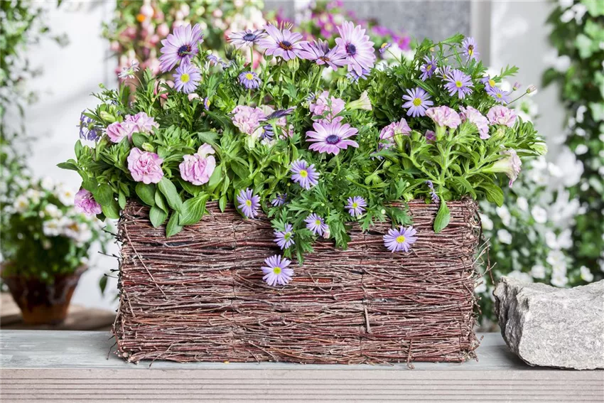 Eine Vielzahl von Balkonpflanzen kann in den Kübeln bunt zusammengemixt werden, was besonders schön aussieht. Jedoch muss hier bei der Auswahl darauf geachtet werden, dass sie die gleichen Bedürfnisse haben und nicht sonnen-und schattenliebende Blumen zusammenstehen. Auch der Wasserbedarf sollte ungefähr gleich sein. Ansonsten kann man sich hier mit getrennten Pflanzgefäßen behelfen.