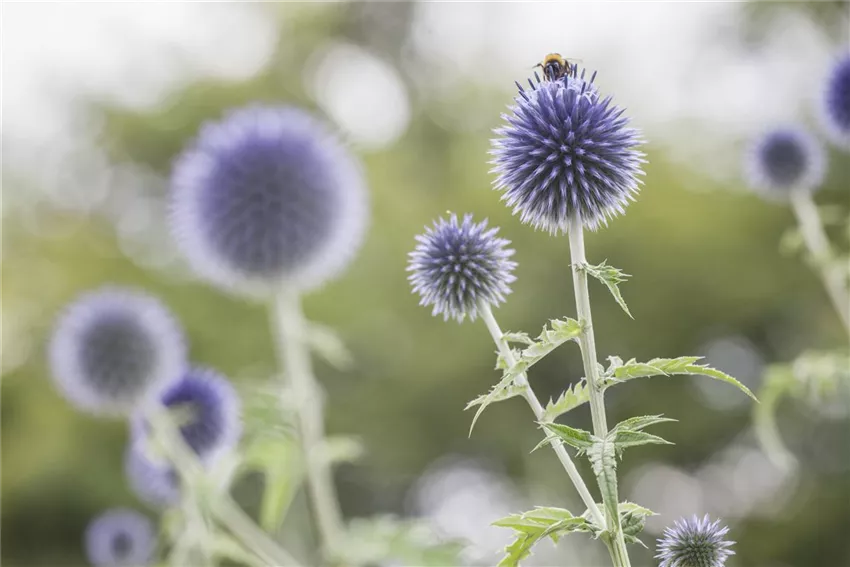 Echinops ritro Als Bepflanzung eigenen sich Vielblüher wie Lavendel, Steinkraut, Blaukissen und Phlox, um Farbe in den Garten zu bekommen. Zugleich decken Sie damit freie Bodenflächen dekorativ ab. Wahre Klassiker unter den halbhohen Blumen sind Sonnenhut, Gerbera, Ringelblume und Lupinen. Aber auch Rittersporn, Kugeldisteln, Kapuzinerkresse, Glockenblumen und Hortensien sollten Sie unbedingt in die nähere Auswahl nehmen.