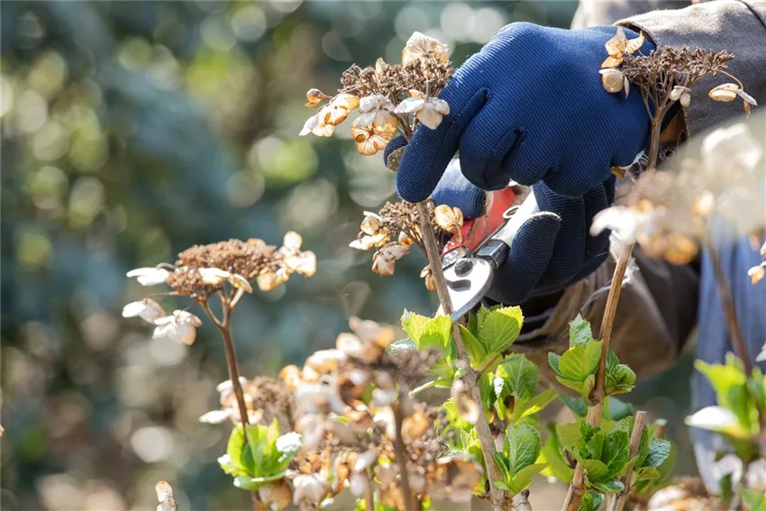 Damit sich viele neue Blüten bilden können, müssen die alten Blütenstände entfernt werden. Das ist vor allem bei den Blütensträuchern wie Hortensien der Fall. Damit die Pflanzen im Frühling so richtig durchstarten können, werden die alten Blütenstände abgeschnitten.