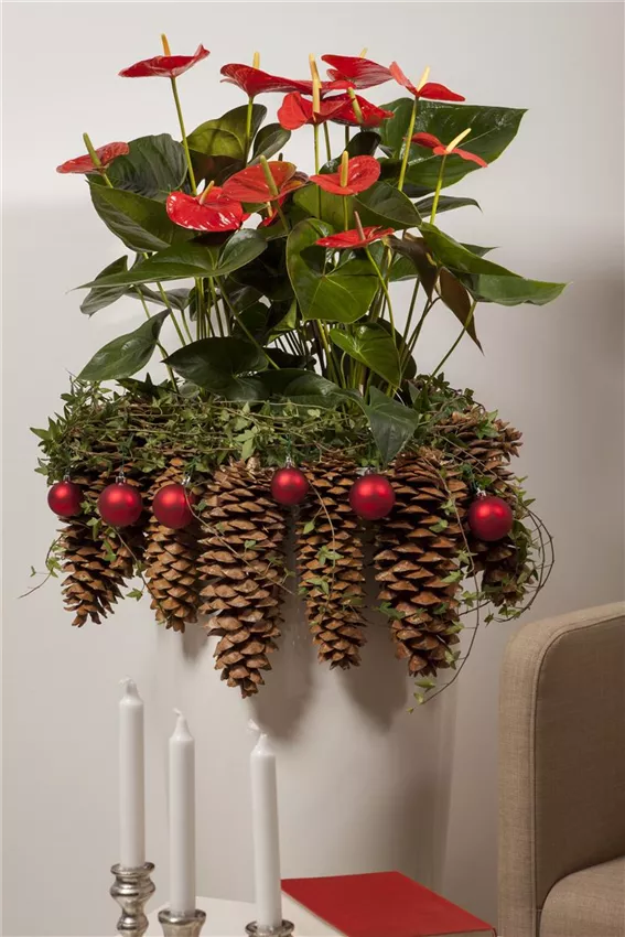 Alles schön und gut, mag mancher Blumenliebhaber nun denken, aber gibt es denn auch einen Adventskranz mit richtigen Blüten? Oh ja! Stellen Sie vier Kerzen in die Mitte einer Kork- oder Holzplatte und umringen Sie sie mit dem getrockneten Flor der fantastischen Hortensie. Dazu folgender Tipp: Kappen Sie die Stängel mehrere Zentimeter unterhalb der Blüte schräg ab und entfernen Sie die Blätter. Dann geben Sie sie in ein Gemisch aus einem Teil Glyzerin und drei Teilen Wasser. Nun lassen Sie das Wasser verdunsten. Automatisch geht dann das Glyzerin in die Blütenpracht über und konserviert sie. Die Farbenpracht bleibt erhalten! Falls Sie diese effektvolle Pflanze noch nicht in Ihrem Garten haben – das können Sie ja nachholen.